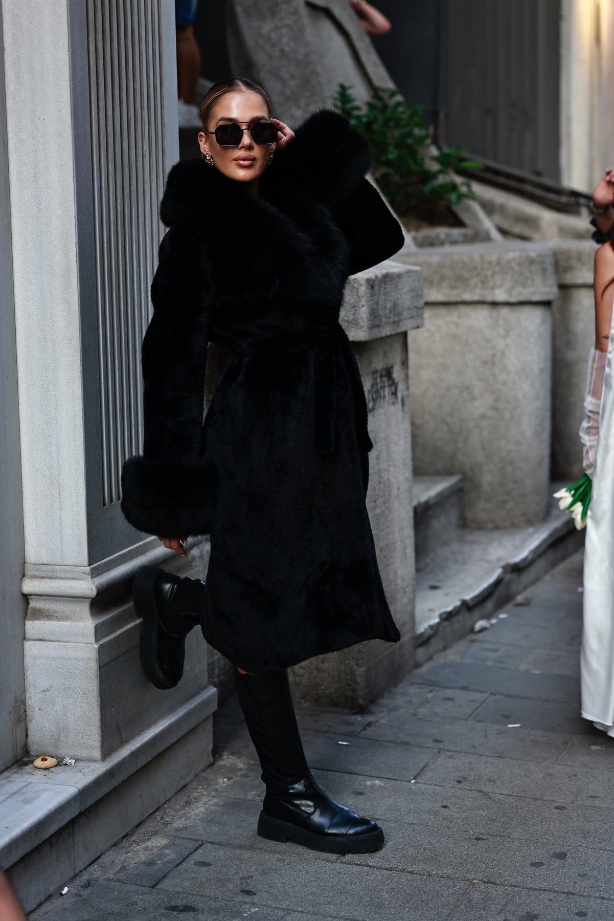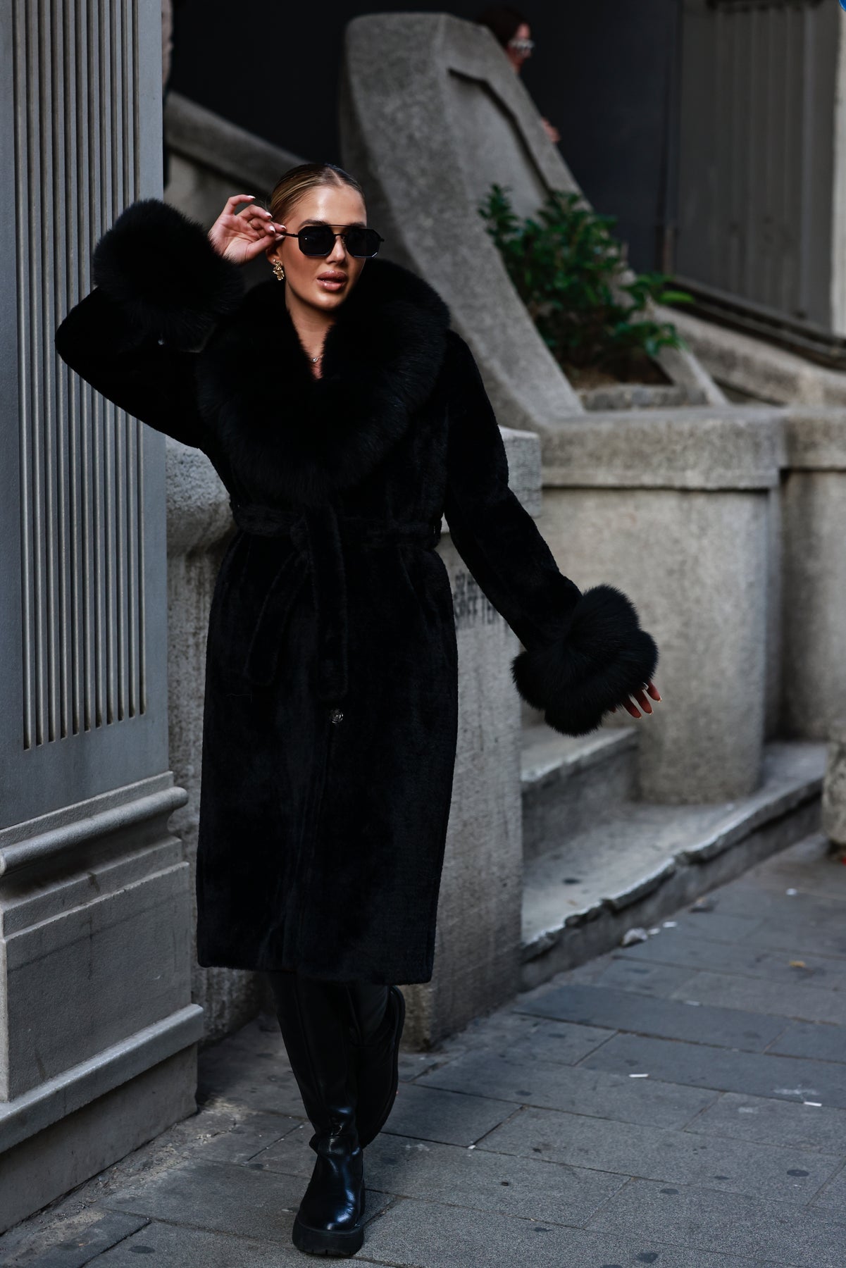 Dlhý kabát z alcantary je dostupný v piatich odtieňoch – béžová, biela, čierna, mliečna a kávová. Decentne zdobený líškou poskytuje výnimočné teplo a pohodlie. Kvalitná látka spolu s detailmi pri krku a rukávoch spoľahlivo udržia teplo vo vnútri a zabránia prenikaniu chladu.